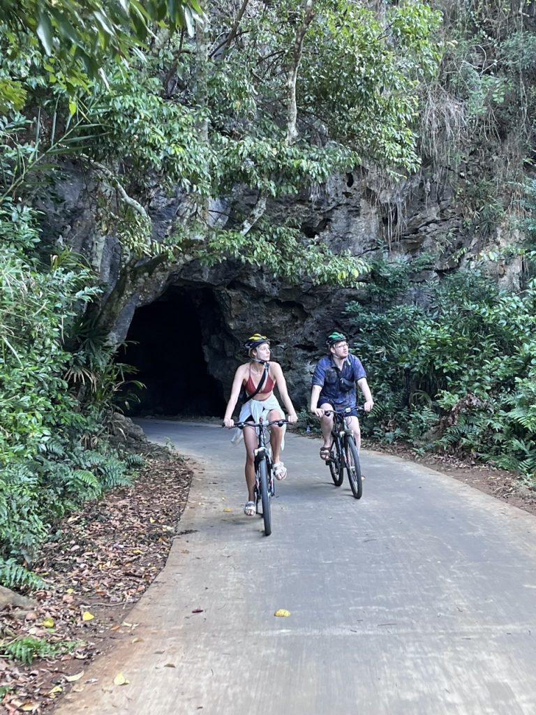 The three-day itinerary transforms the cruise from experience into journey. Day one mirrors the overnight programโsame boarding, same Tra Bau exploration, same enchanting sunset. But day two introduces an entirely different dimension: a full-day excursion deeper into Lan Ha Bay aboard a smaller day-trip boat, culminating in Viet Hai village. This centuries-old fishing community, accessible only by boat, exists in near-complete isolation from modern Vietnam. You’ll cycle (or take an electric cart) through tropical rainforest canopy, passing beneath limestone cliffs draped in jungle, until thatched-roof houses emerge from the green. Here, time moves to agricultural rhythmsโyou’ll observe daily village life, understand how earthen walls are built from straw and mud, and connect with a culture that tourism hasn’t yet transformed. The afternoon brings more kayaking in a secluded lagoon and swimming in waters so clear you can count the fish below. A second sunset, a second dinner, a second evening of your choosingโwhether that’s stargazing, cocktails, or conversation with fellow travelers.