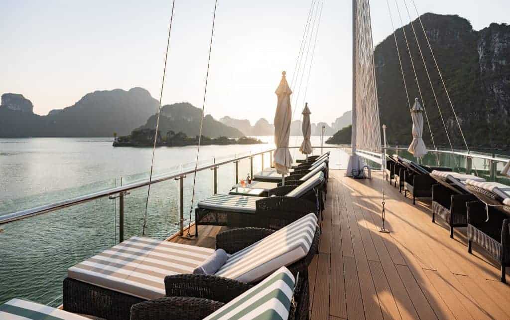 Imagine waking up to the gentle sway of the sea, surrounded by towering limestone karsts and the emerald waters of Lan Ha Bay. Aboard Doria...