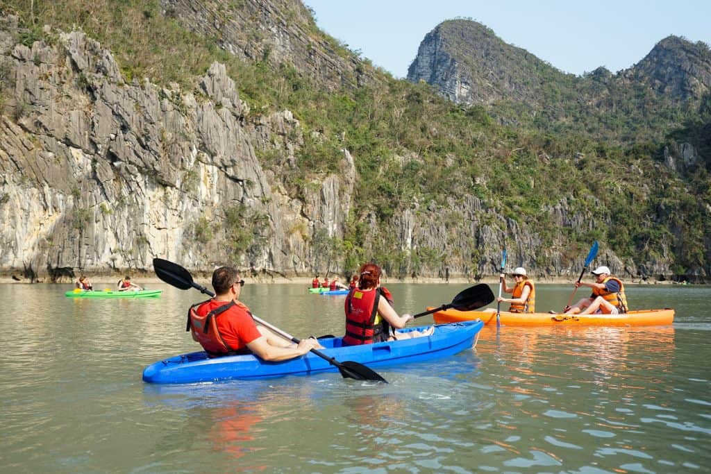 Morning: Transfer from Hanoi ๐ โ Cruise boarding ๐ข โ Kayak hidden lagoons ๐ถ