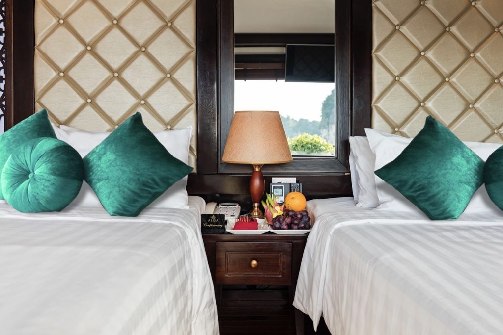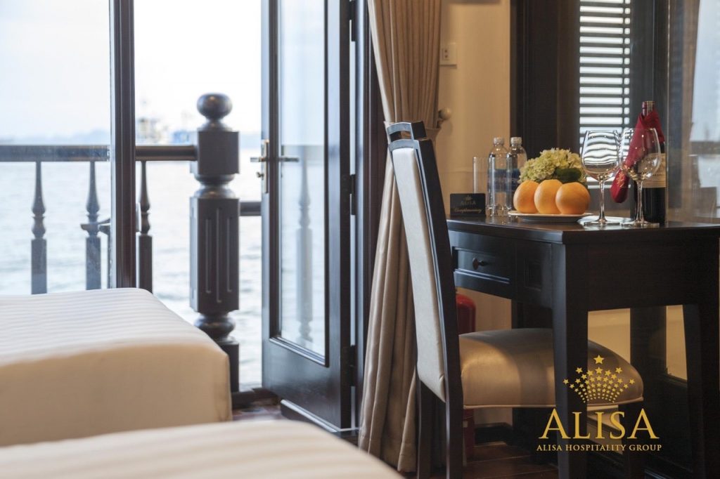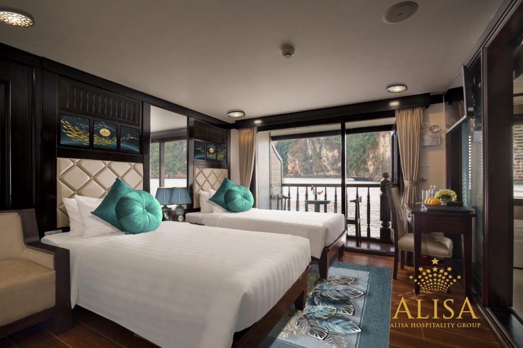 Alisa Premier Luxury Cruise is designed as a floating 5-star hotel with only 22 cabins over 4 decks, combining a boutique feel with a surprisingly wide range of facilities including outdoor swimming pool, fitness center, spa & massage, and premium bar–lounge spaces. Its cabin mix of family connecting suites, senior and royal suites with private balcony and Jacuzzi bathtub makes it particularly attractive for both couples and multi-generation families who want resort-style comfort while still cruising deep into Halong Bay.