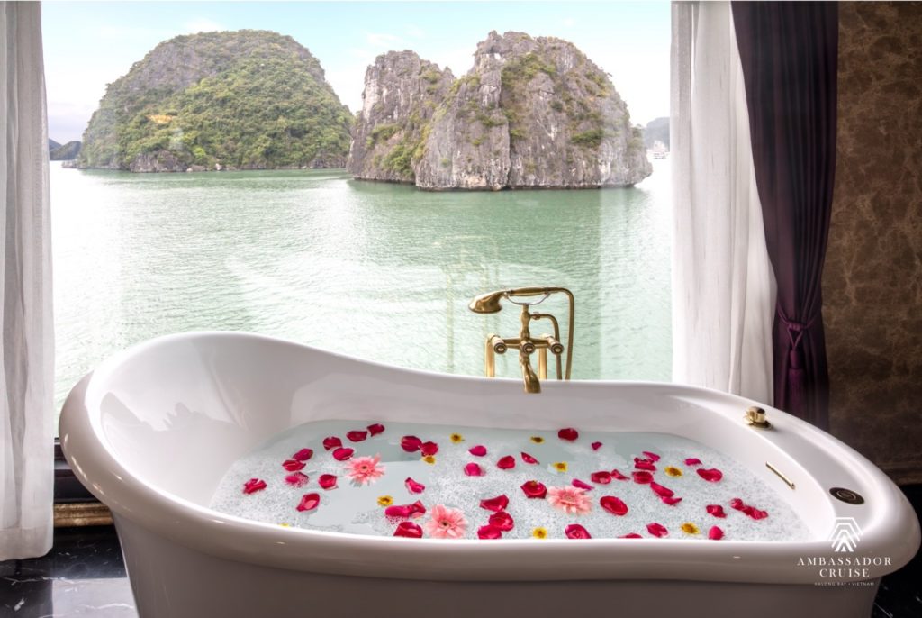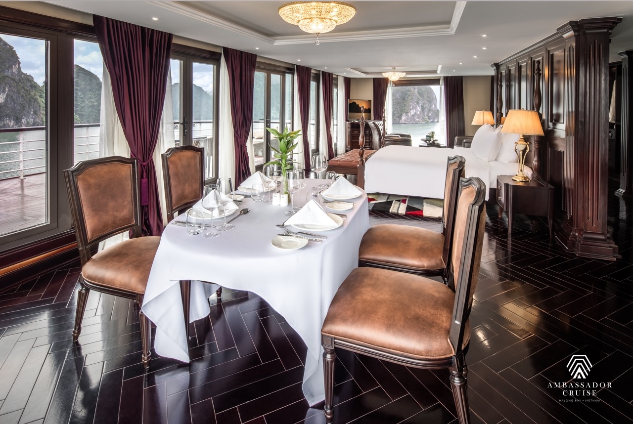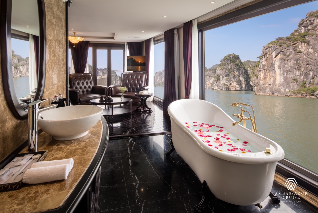 ๐จ Overnight: Ambassador Cruise I โ Halong Bay (private balcony cabin).