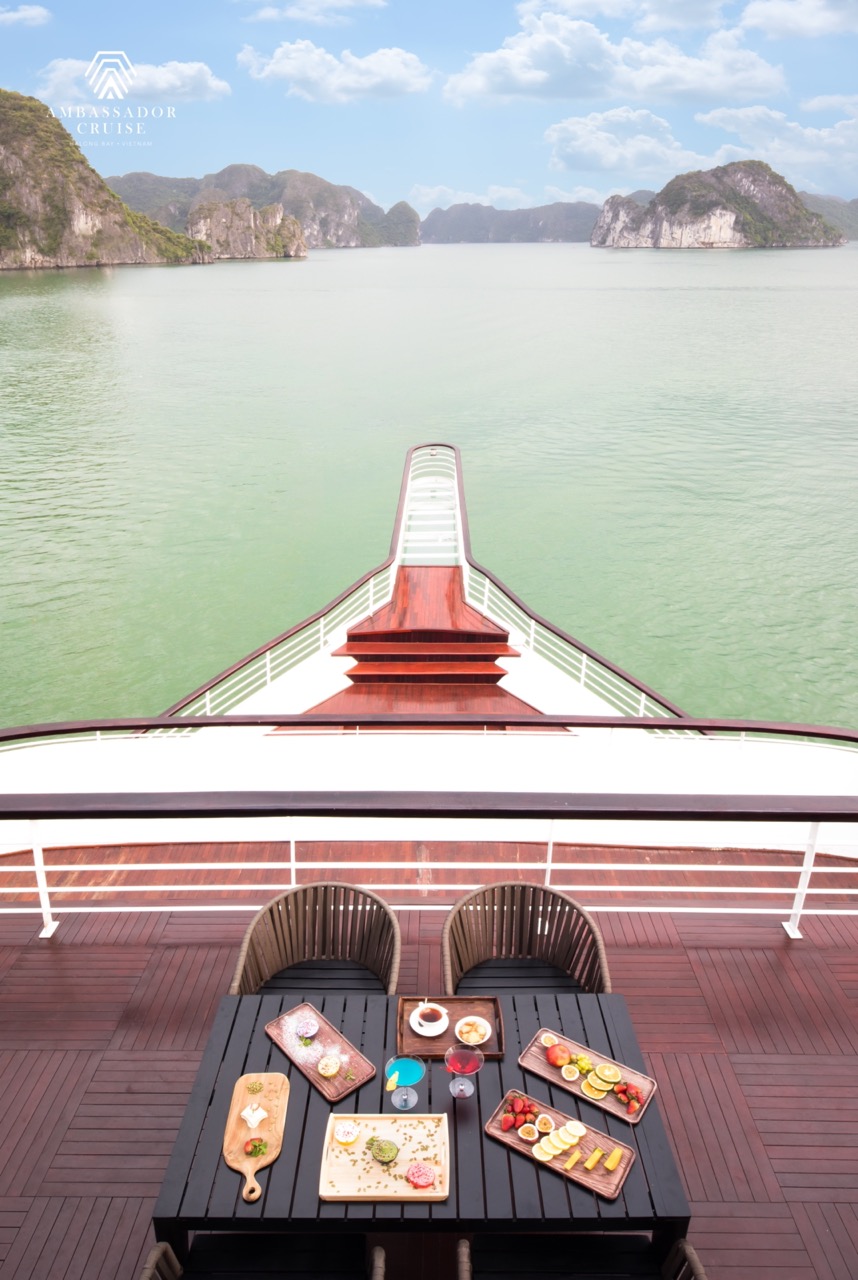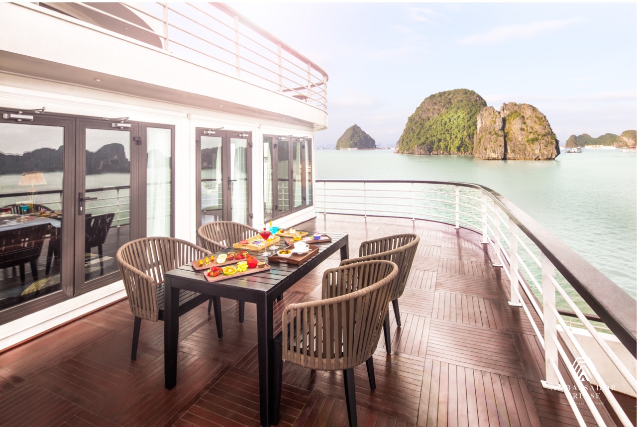 Boarding day opens like a private chapter of Halongโs legendโthe hush of the lounge, the glint of sea light, and the promise of golden hour on your skin.