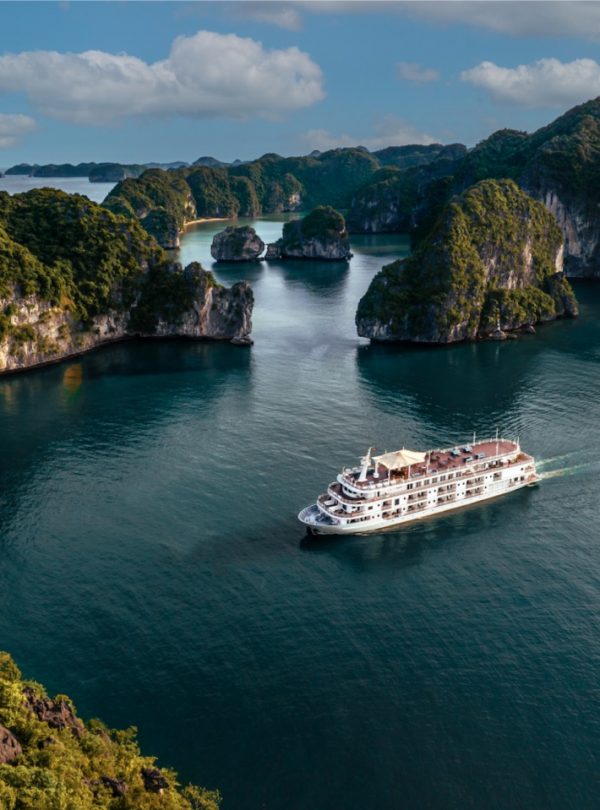 Glide through serene Lan Ha Bay in refined comfort—balcony cabin, curated cuisine, and soft-paced excursions.
