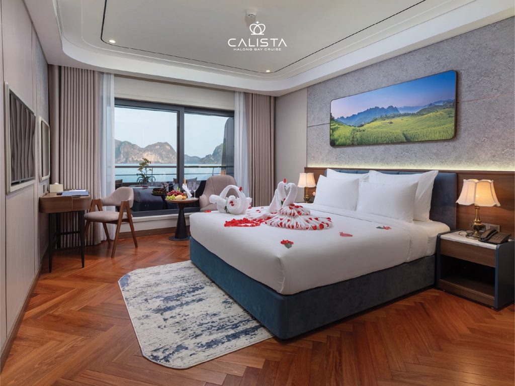 Calista Cruise positions itself as a next-generation ultra-luxury vessel in Halong Bay, combining super-yacht scale amenities with large-ship stability. It is designed for guests who want resort-level facilities without sacrificing a curated bay itinerary.