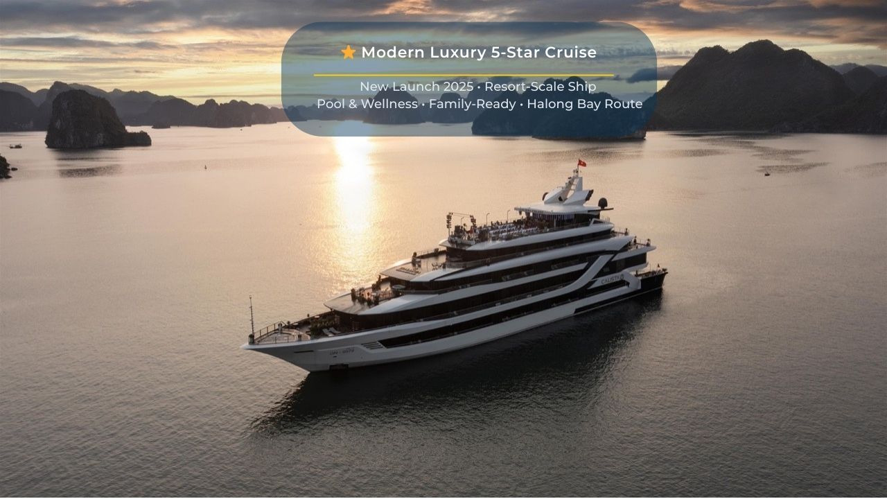 Calista Cruise positions itself as a next-generation ultra-luxury vessel in Halong Bay, combining super-yacht scale amenities with large-ship stability. It is designed for guests who want resort-level facilities without sacrificing a curated bay itinerary.