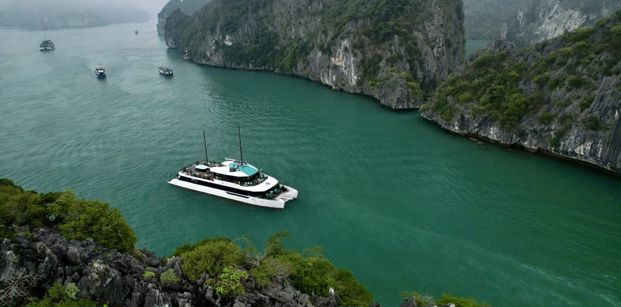 Glide a premium catamaran through quiet coves, kayak Bright–Dark Cave, swim Frog Pond, and savor sunset tea—seamlessly arranged from Hanoi.