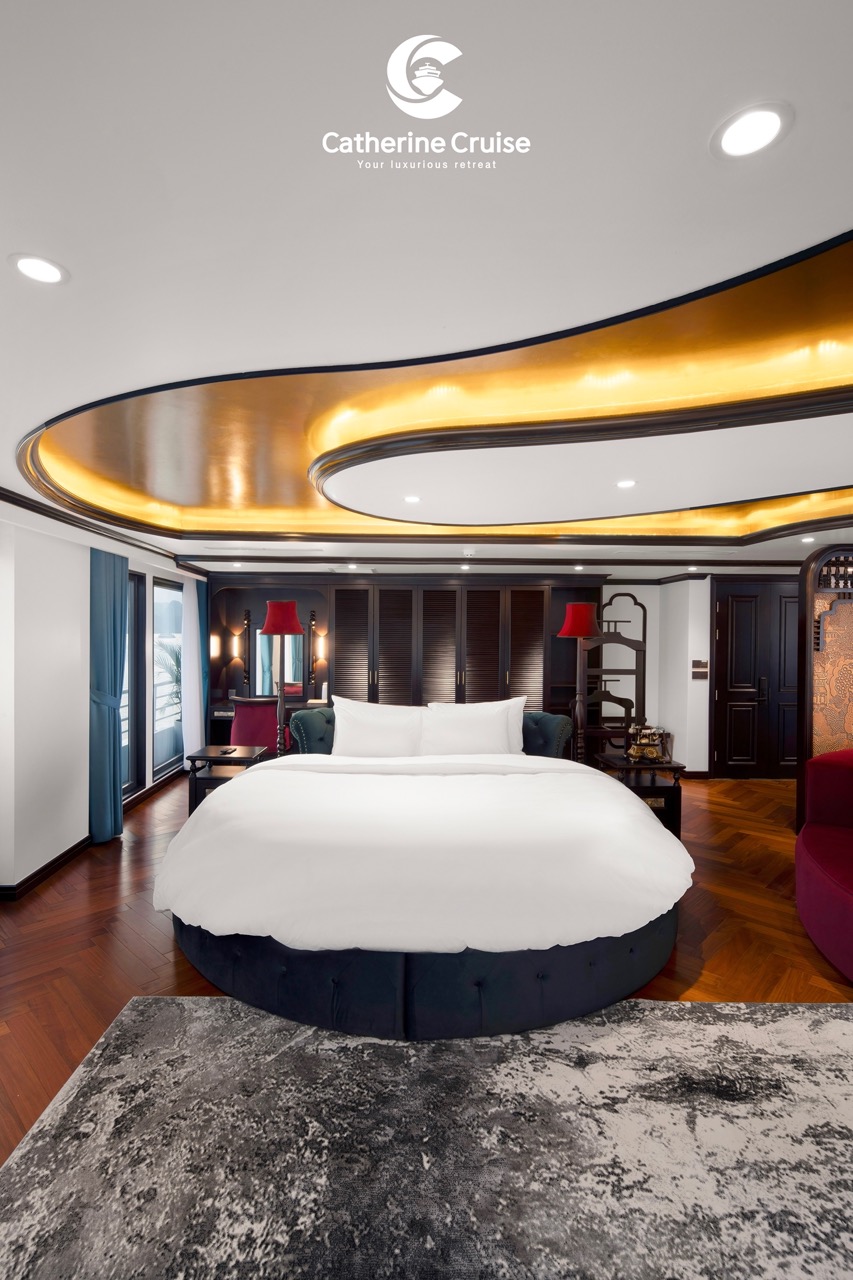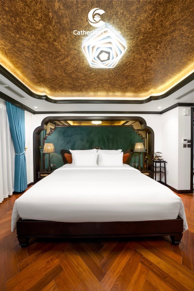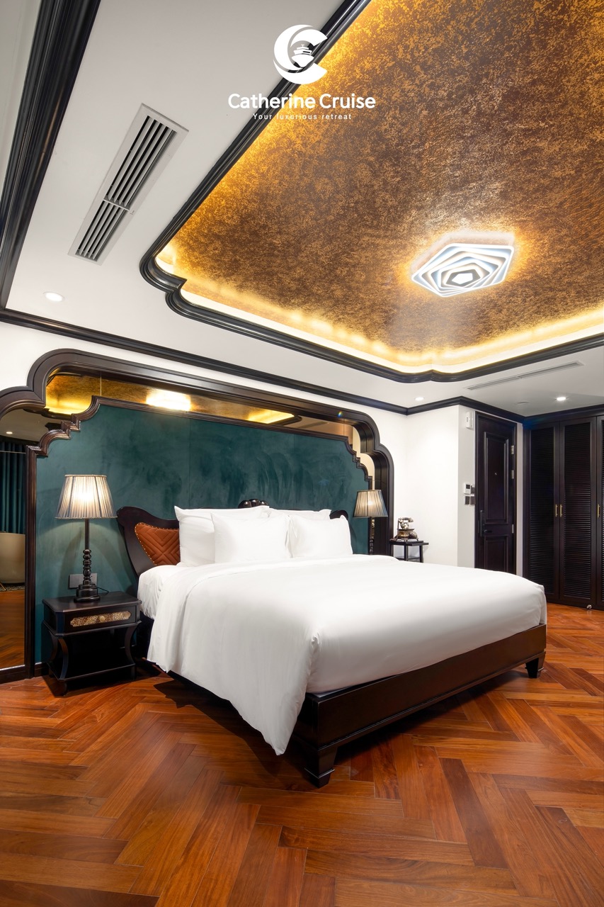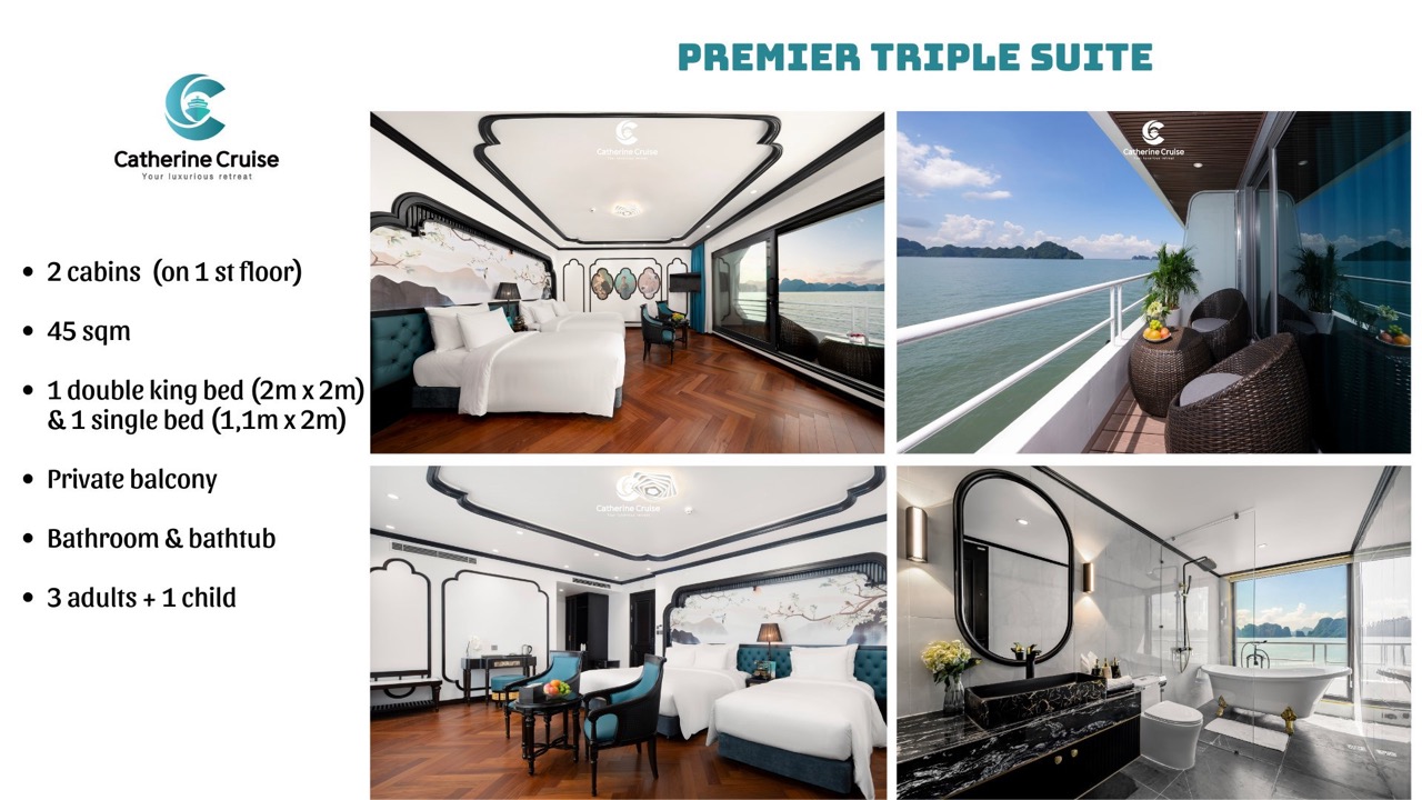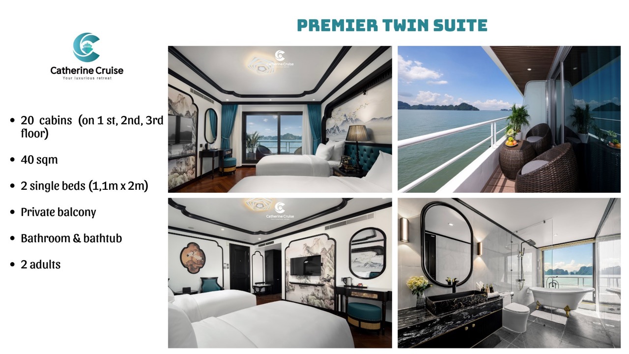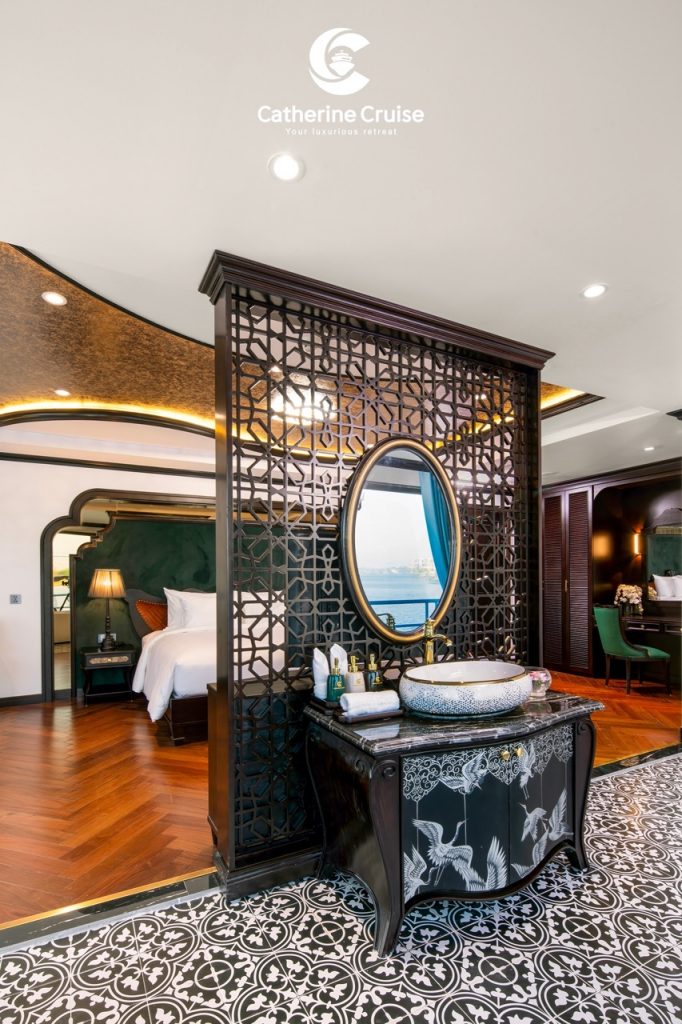 Every cabin on Catherine Cruise offers full sea view with a private balcony and bathtub, ensuring you never lose sight of Halong Bayโs scenery.