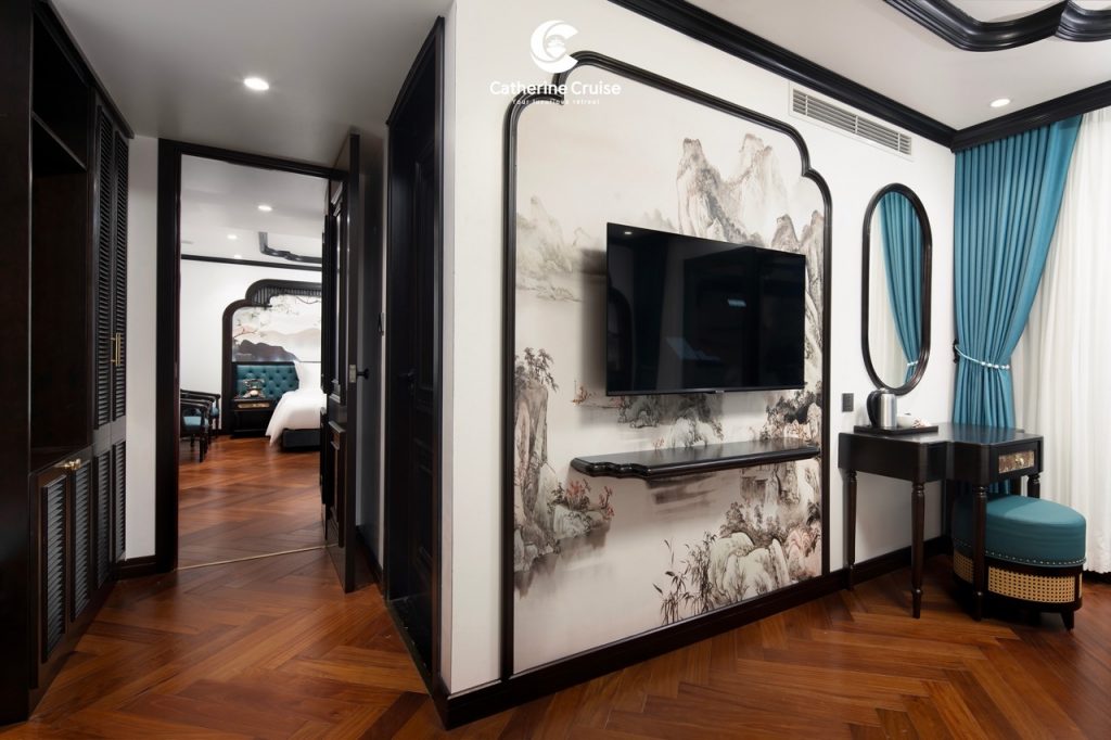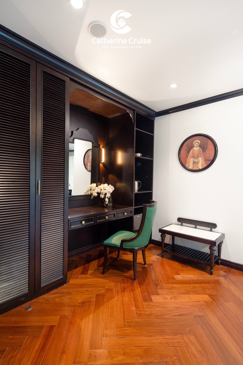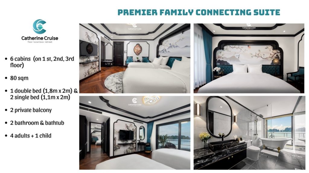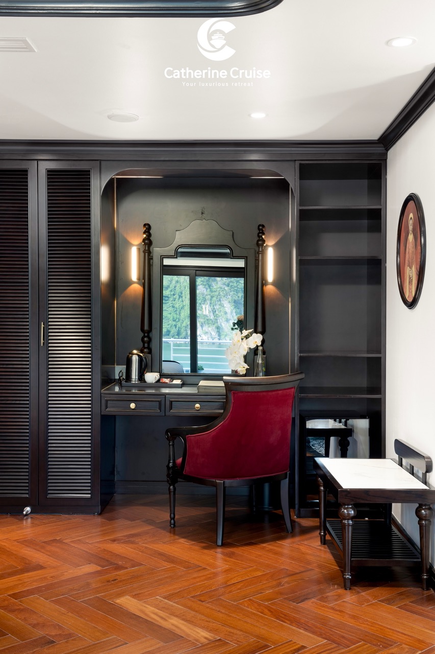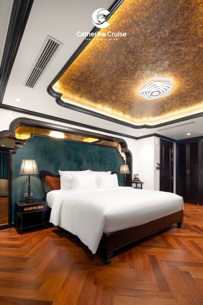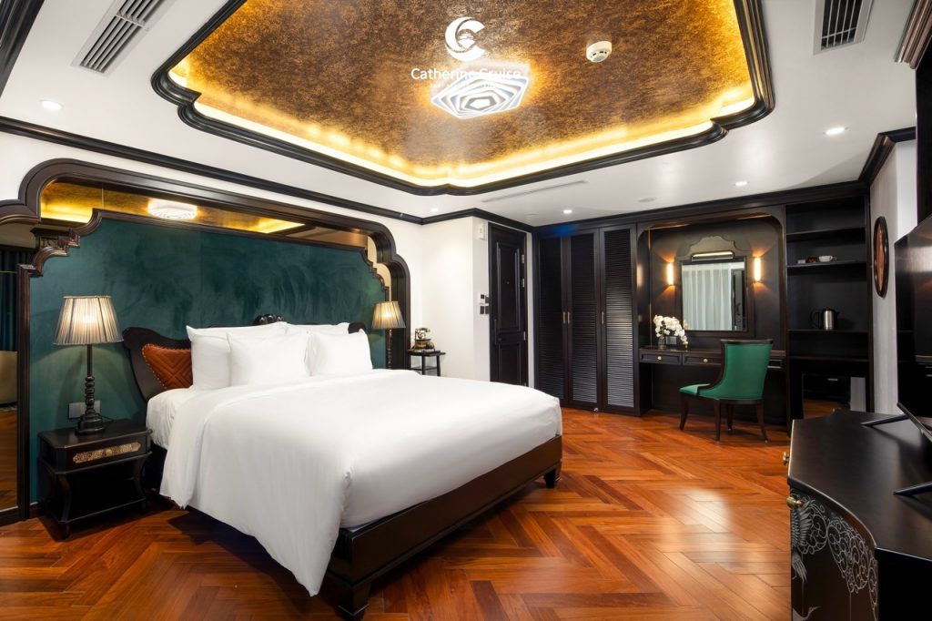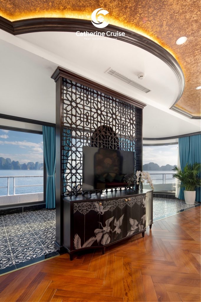 Every cabin on Catherine Cruise offers full sea view with a private balcony and bathtub, ensuring you never lose sight of Halong Bayโs scenery.