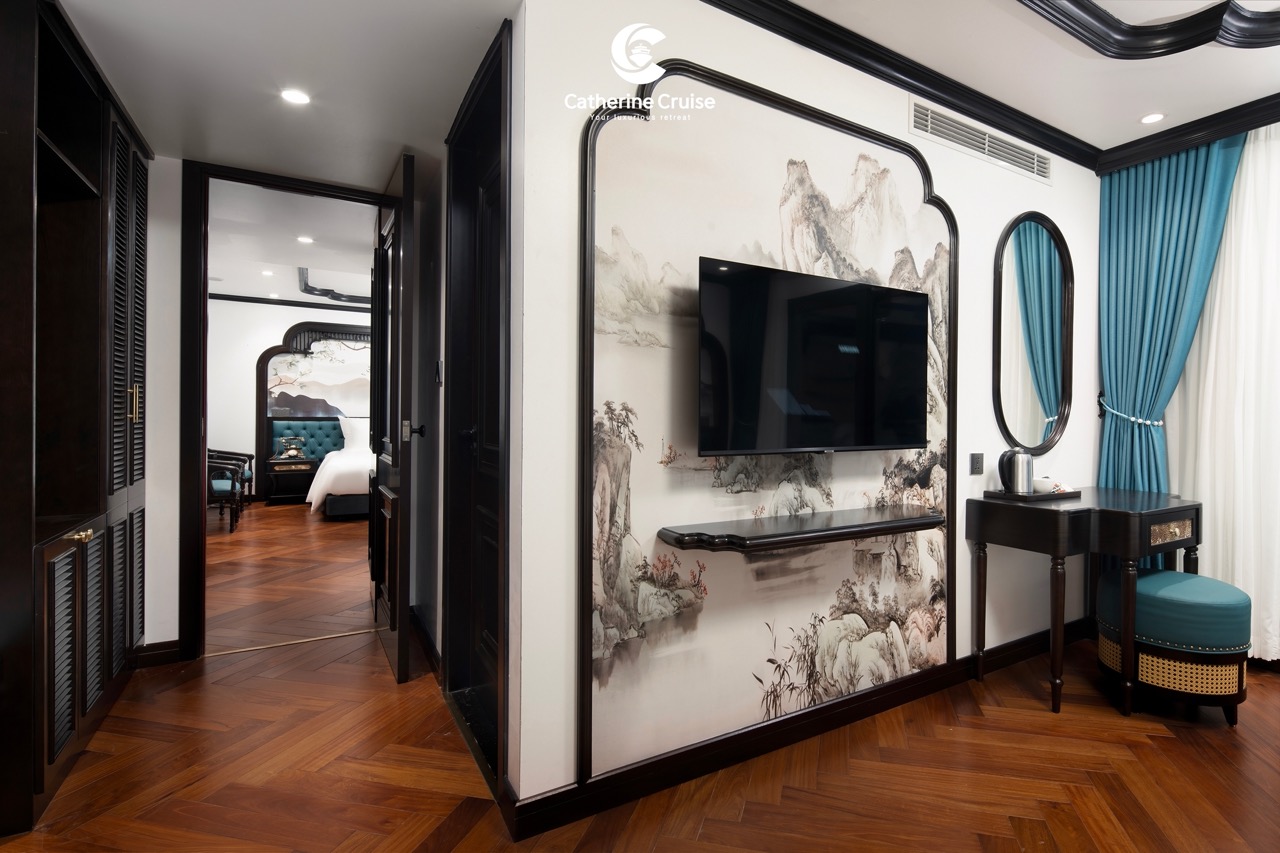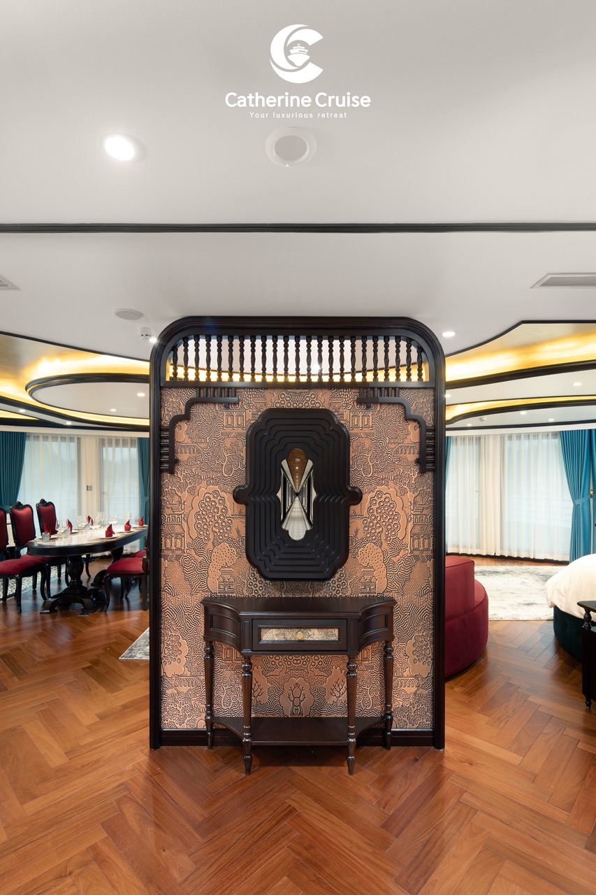Once on Catherine Cruise, a short safety briefing gives way to your first lunch in the elegant restaurant, where windows frame the limestone pillars of Halong Bay as they slide silently by.