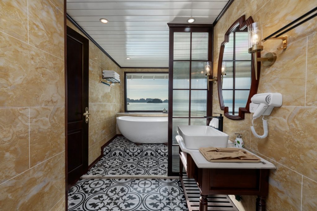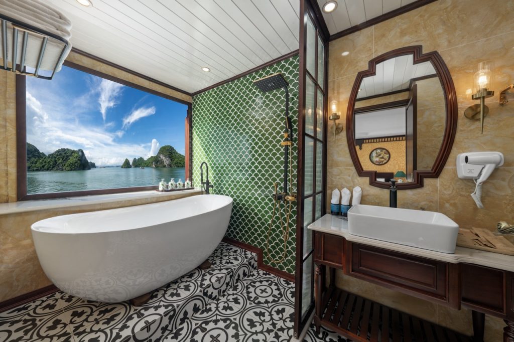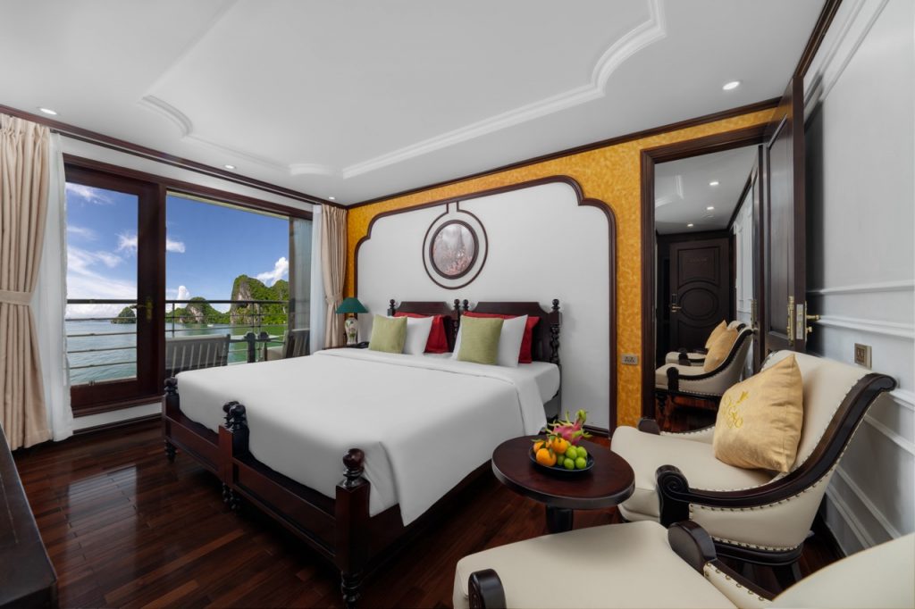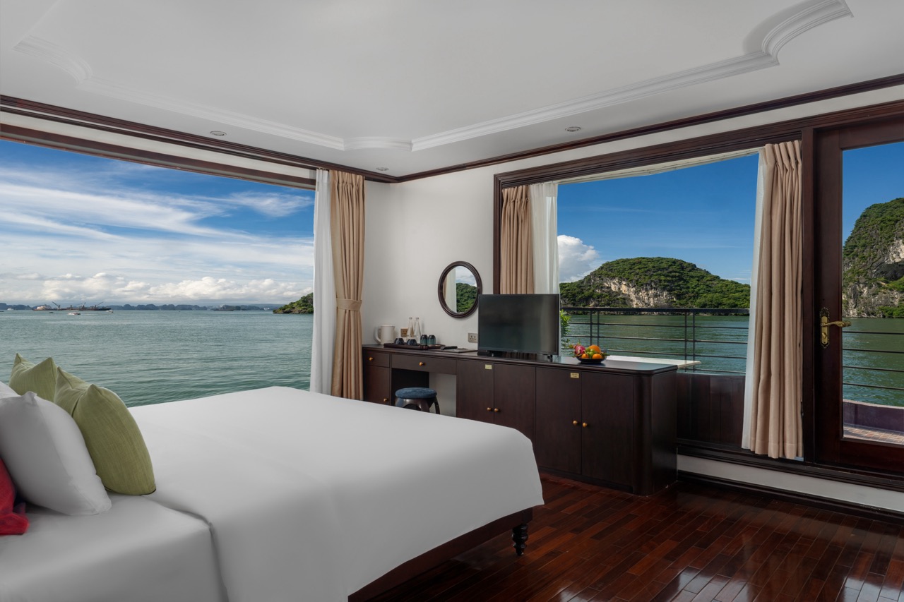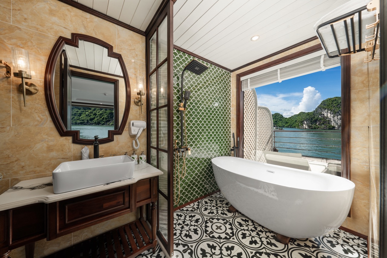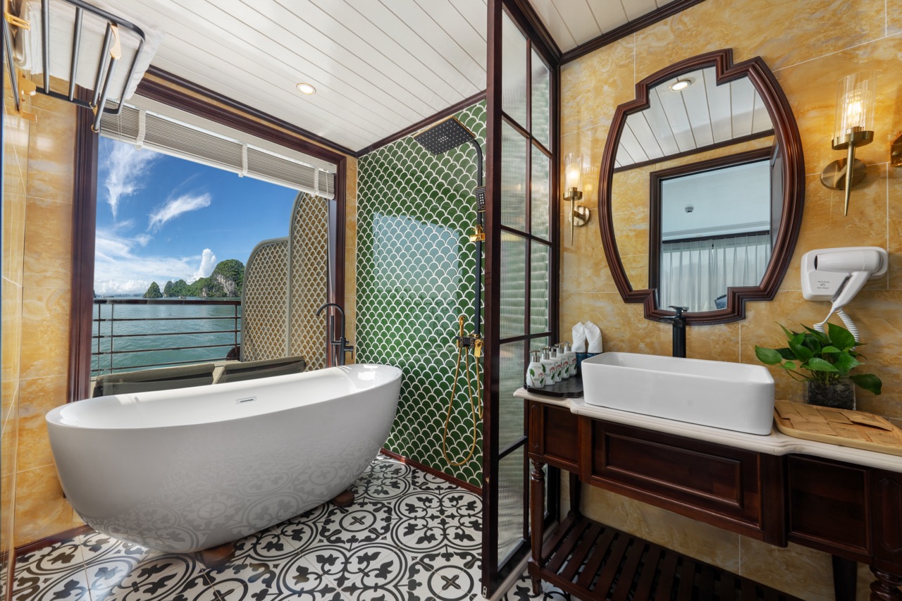 - ๐จ Balcony Cabins with Bathtubs & Suite Options Choose from Balcony Junior, Executive Balcony, Family Balcony, Deluxe Sea View, Ambassador Suite, or Presidential Suite, all with hot bathtubs, quality bedding, and thoughtful details for luxury vietnam tours.