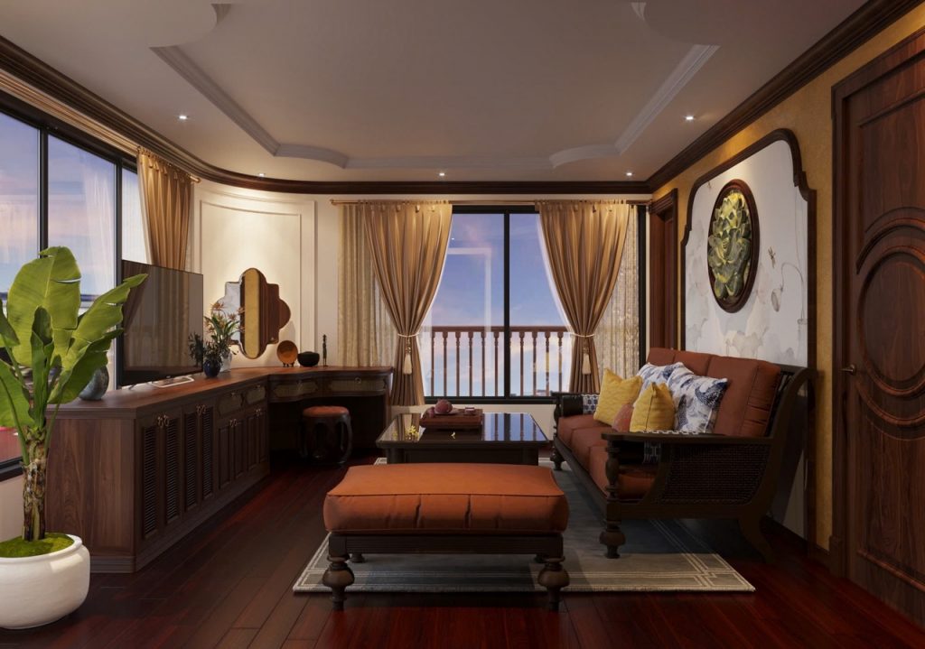 Cabins on Cycad Cruise are designed in warm Indochine style, with wooden details, soft lighting, and bathtubs as standard. Balcony Junior and Executive Balcony cabins are ideal for couples; Family Balcony rooms (36 mยฒ, up to 4 guests) are perfect for parents traveling with children; Deluxe Sea View cabins offer great value with large windows instead of balconies. For those seeking the highest comfort, the Ambassador Suite (46 mยฒ) and the Presidential Suite on the upper deck come with expansive balconies, extra space for lounging, and a more private ambience โ ideal for honeymooners or luxury-focused travelers planning a once-in-a-lifetime luxury trip to vietnam.