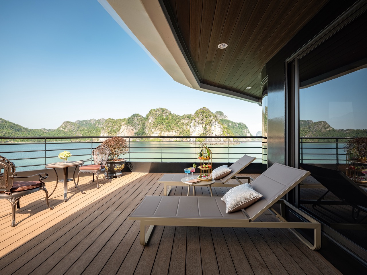 - 🧘 Sunrise Tai Chi on the Sundeck – Begin day two with gentle Tai Chi or peaceful tea as dawn light spreads across Lan Ha Bay, setting a restorative tone.
