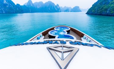 Sail through legendary Halong Bay on a next-generation entertainment cruise with caves, island views, a four-seasons pool and golden-hour music by the water.