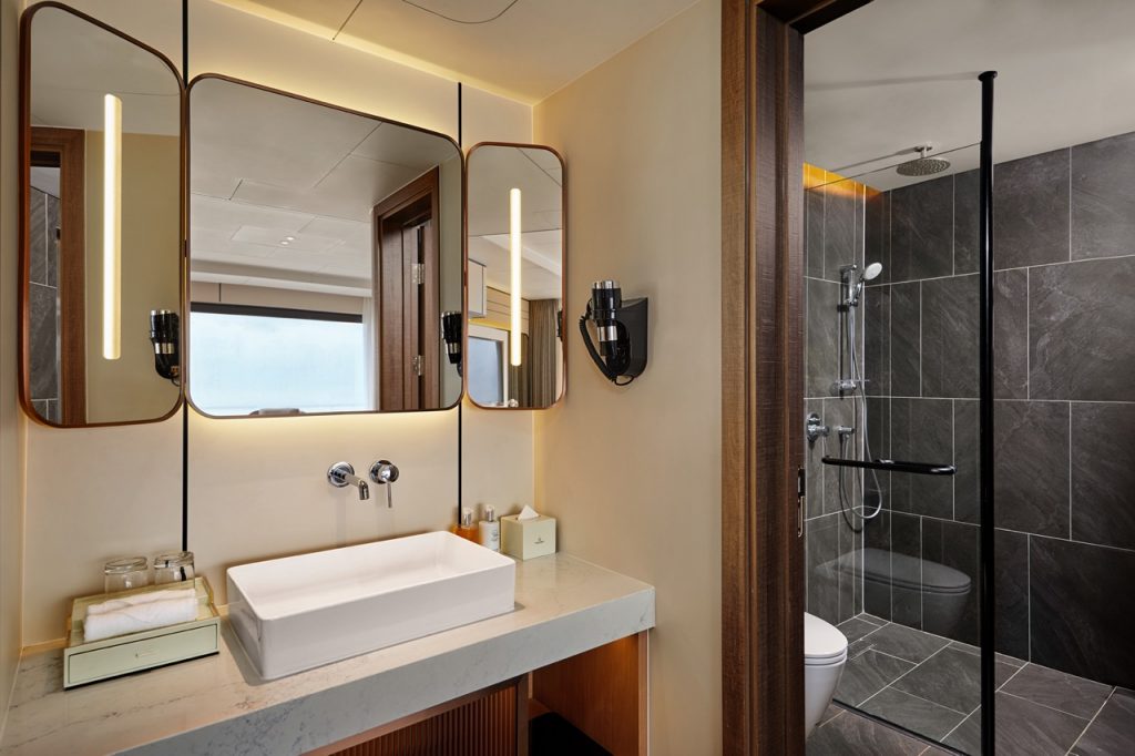 - Full suite ladder: Nine suite categories from 30 mยฒ Ocean Suites with floor-to-ceiling windows to 109 mยฒ top suites with private dressing, dining and sauna areas, giving clear options for different guest profiles.