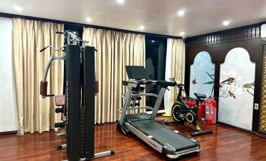 Early-morning Tai Chi on the sundeck is part of the daily program, offering a calm, healthy start surrounded by Halong’s limestone peaks.