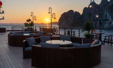 On La Regina Classic Cruise, all cabins are designed in a warm wooden style, with large windows framing the seascape and private en-suite bathrooms for comfort. Guests can choose between cozy double/twin cabins for couples and friends, or larger options suitable for small families who prefer to stay together. Most cabins offer sea views so you can wake up to limestone peaks and drifting fishing boats; premium options bring extra space or balcony areas ideal for sunrise coffee or sunset conversation. For honeymooners or special occasions, ViettrendTour can arrange romantic turndown touches, anniversary setups and cabin placement in quieter locations upon request.