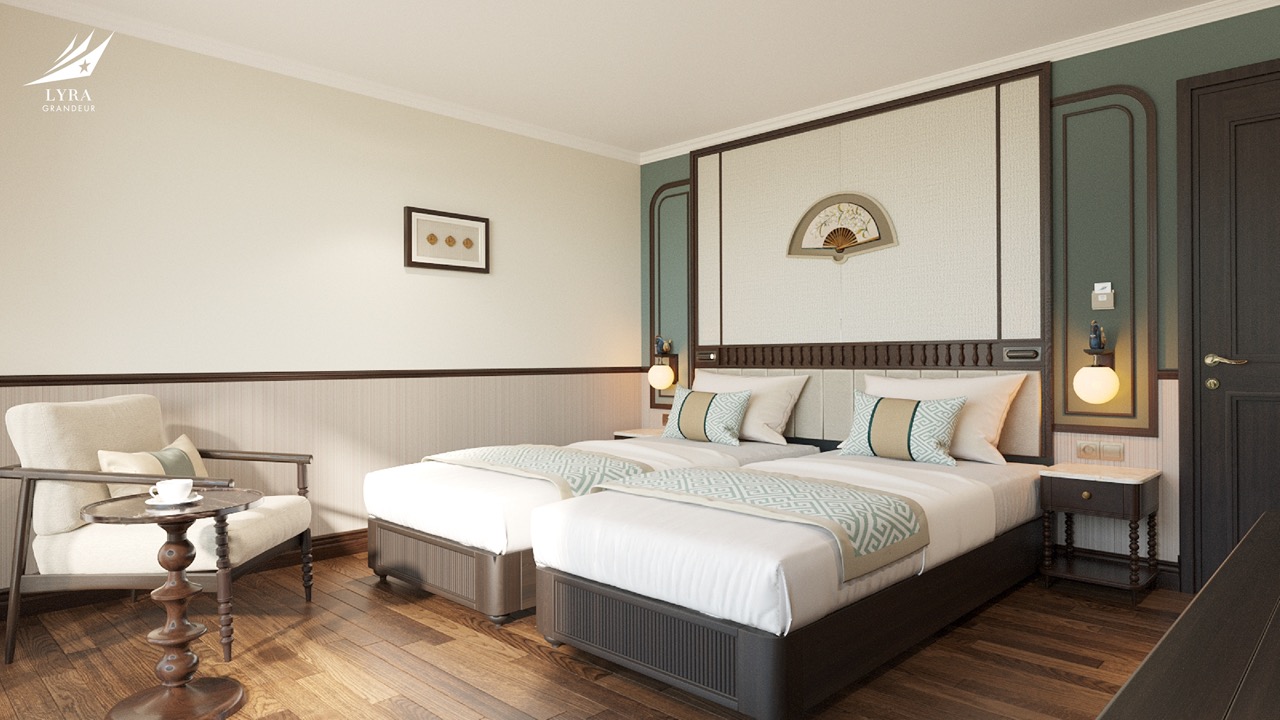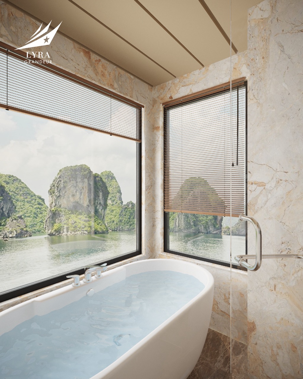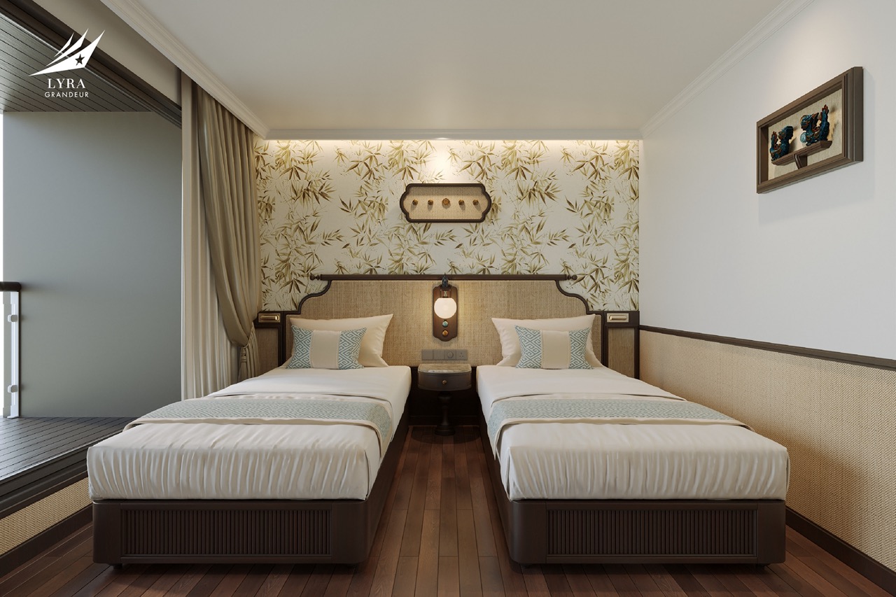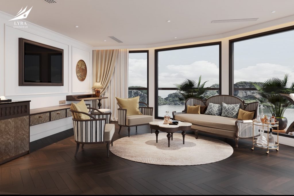 Every cabin on Lyra Grandeur is a suite, and every suite opens to the water. Entry-level options already include private balconies and generous space; upper-deck suites add elevated views and extra quiet. Duplex suites are the show-stoppers, with two-level layouts, indoor seating zones and sweeping windows that make the karsts feel almost within reach. Couples often choose higher decks for privacy and romance; families and friends can request connecting suites or nearby cabins so everyone stays close. ViettrendTour can arrange special turndown touches โ flowers, cakes, sparkling wine โ for anniversaries, birthdays or honeymoons.