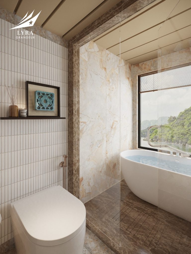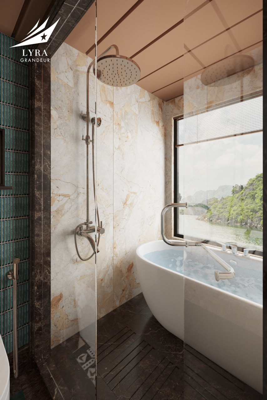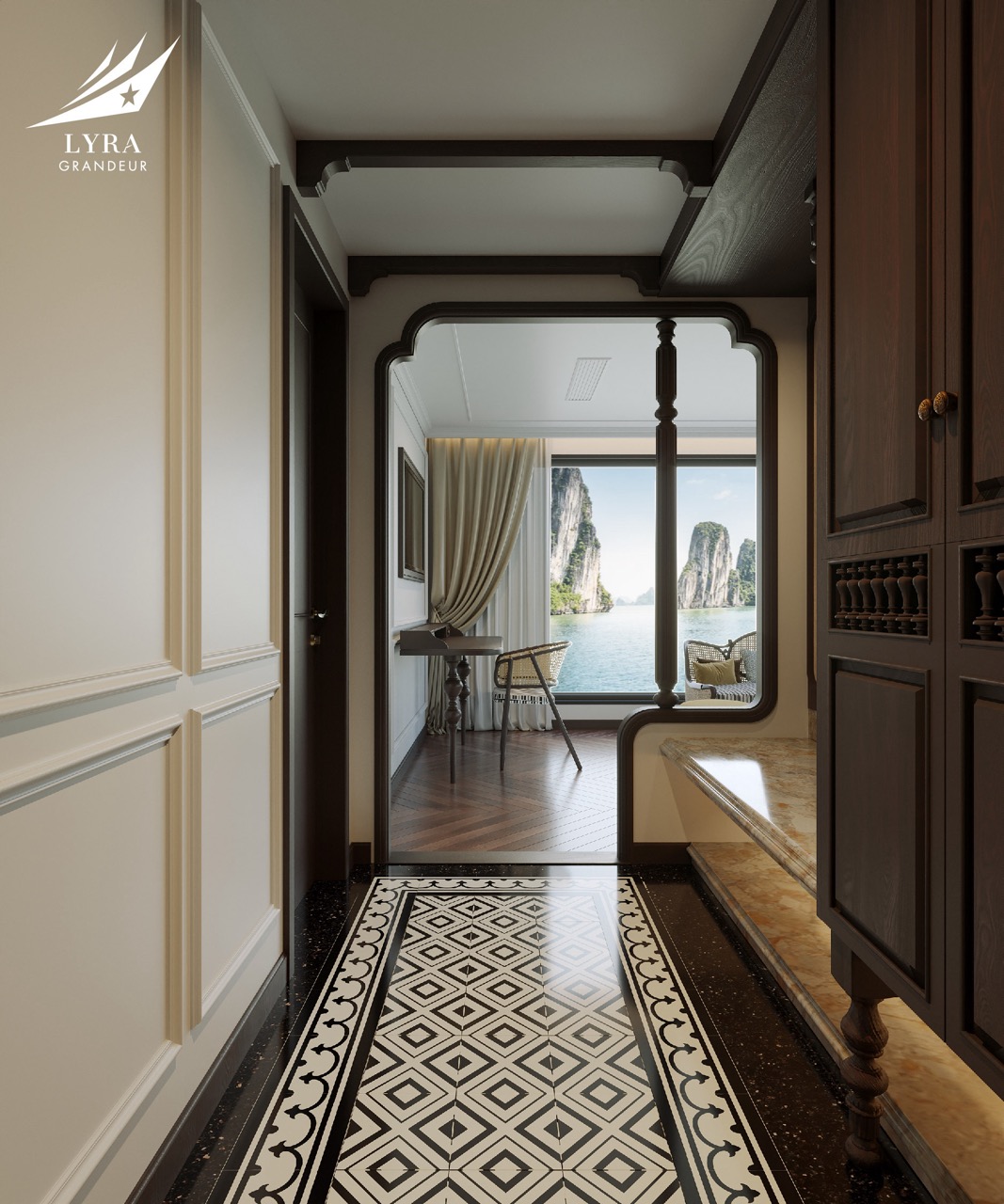Every cabin on Lyra Grandeur is a suite, and every suite opens to the water. Entry-level options already include private balconies and generous space; upper-deck suites add elevated views and extra quiet. Duplex suites are the show-stoppers, with two-level layouts, indoor seating zones and sweeping windows that make the karsts feel almost within reach. Couples often choose higher decks for privacy and romance; families and friends can request connecting suites or nearby cabins so everyone stays close. ViettrendTour can arrange special turndown touches โ flowers, cakes, sparkling wine โ for anniversaries, birthdays or honeymoons.