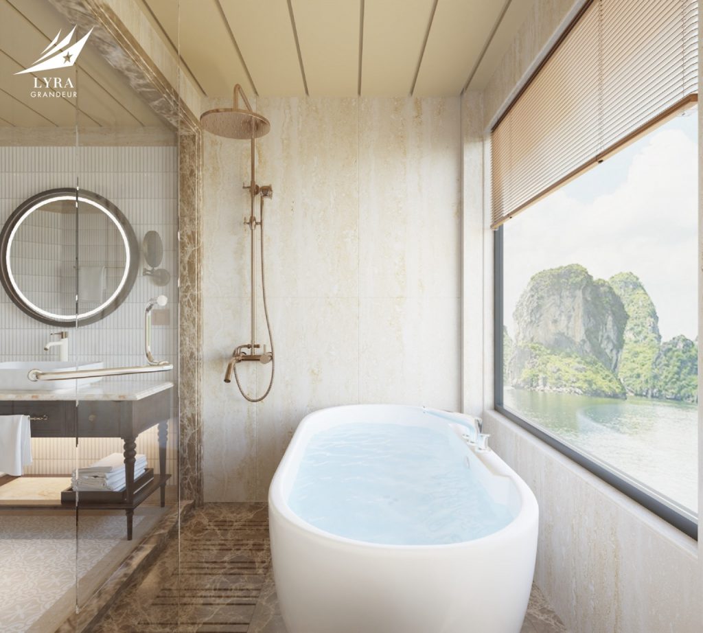 Lyra Grandeur stands out with a heated infinity pool, jacuzzi, Nordic-style outdoor sauna, spa, mini-golf and large, stylish suites (including duplexes). It feels more like a floating boutique hotel than a classic boat, and its route favors quieter corners of Lan Ha Bay.