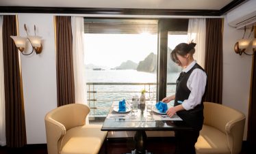 To protect the fragile ecosystem of Halong Bay and Lan Ha Bay, single-use plastic bottles are restricted by local authorities. Guests are encouraged to bring and use reusable water bottles. Filtered drinking water is provided onboard throughout the journey.