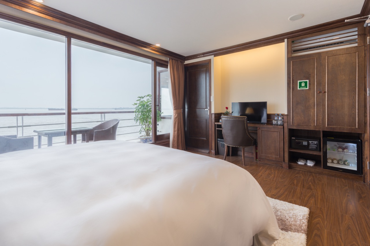Signature upper-deck suite for couples who want space, quiet, and golden-hour balcony time.