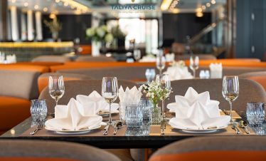Orchid Trendy Cruise offers a compact, well-designed fleet of cabins: Deluxe and Premium Deluxe balcony rooms (28 m²) on lower and upper decks, plus spacious Exclusive Suites (45 m²) with panoramic views. Every cabin features a private balcony, large windows, refined bedding and a calming neutral palette, creating a soft, hotel-like feel at sea. Families can reserve connecting Deluxe/Premium units or multi-bed family layouts, while couples often choose upper-deck Premium or Suite cabins for the most cinematic views. Anniversary or honeymoon guests can request simple complimentary touches such as bed decorations to make the stay more personal.