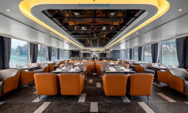 - 🍽️ 12:45 – 13:00 – Enjoy lunch in the panoramic restaurant as the ship glides between limestone pillars, moving gradually from Ha Long Bay toward Lan Ha Bay.