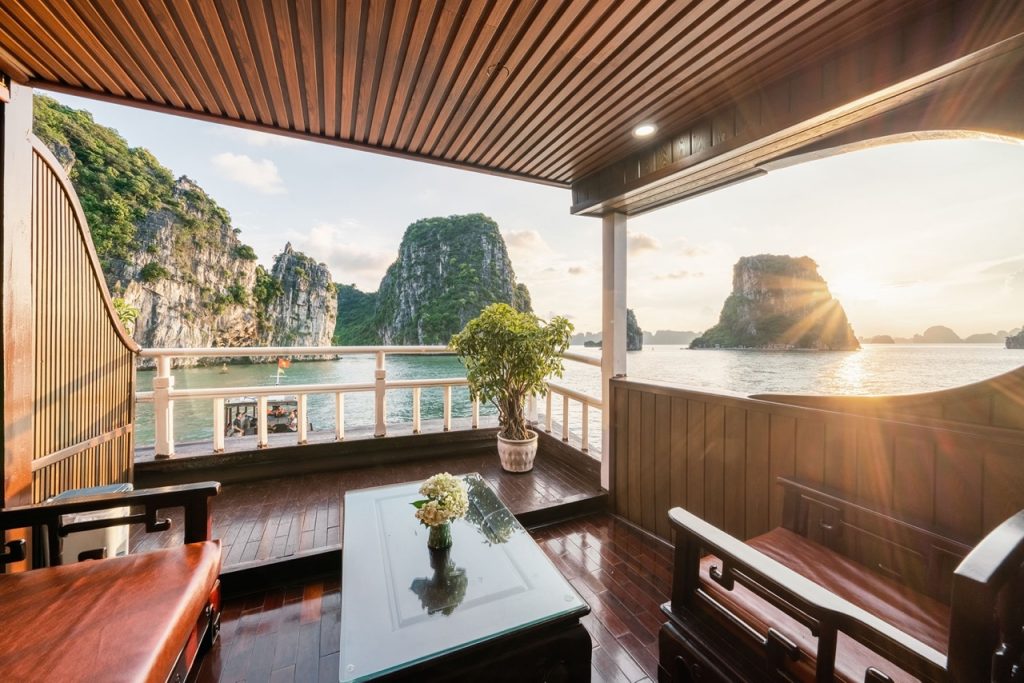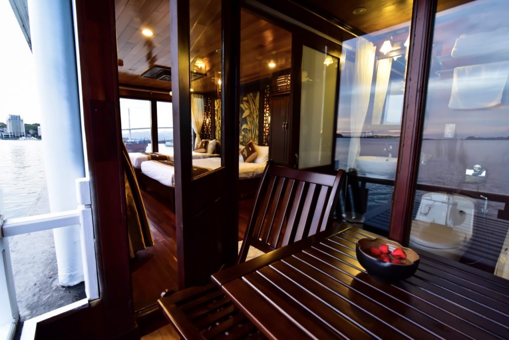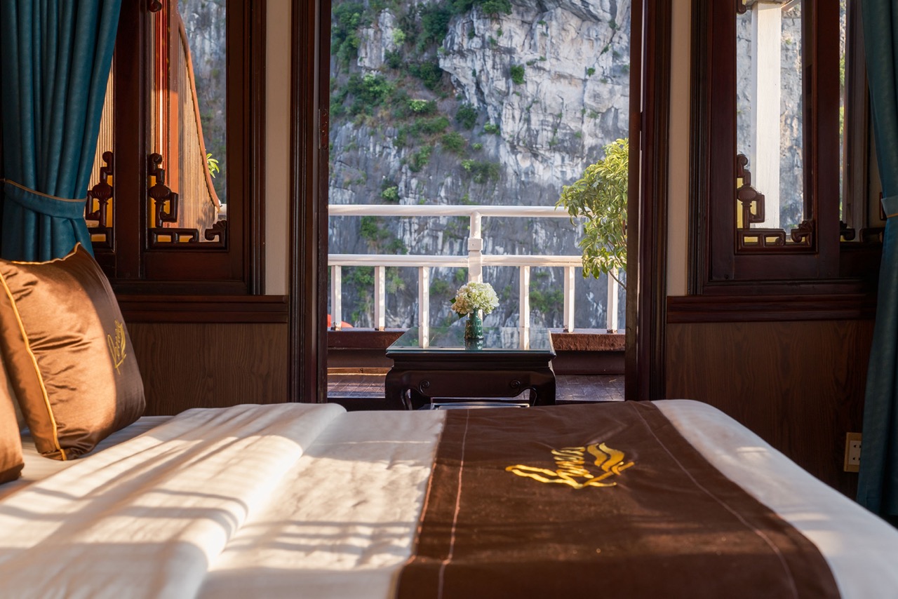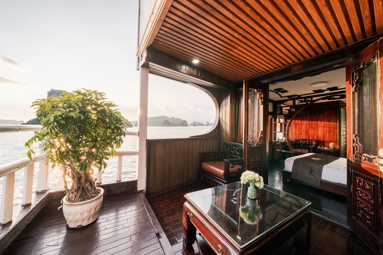 Classic wooden suite with a private balcony overlooking the quietest part of Bai Tu Long Bay.