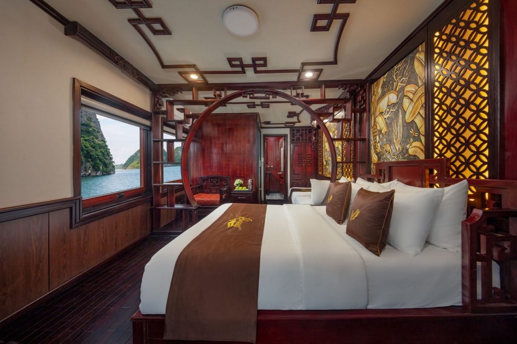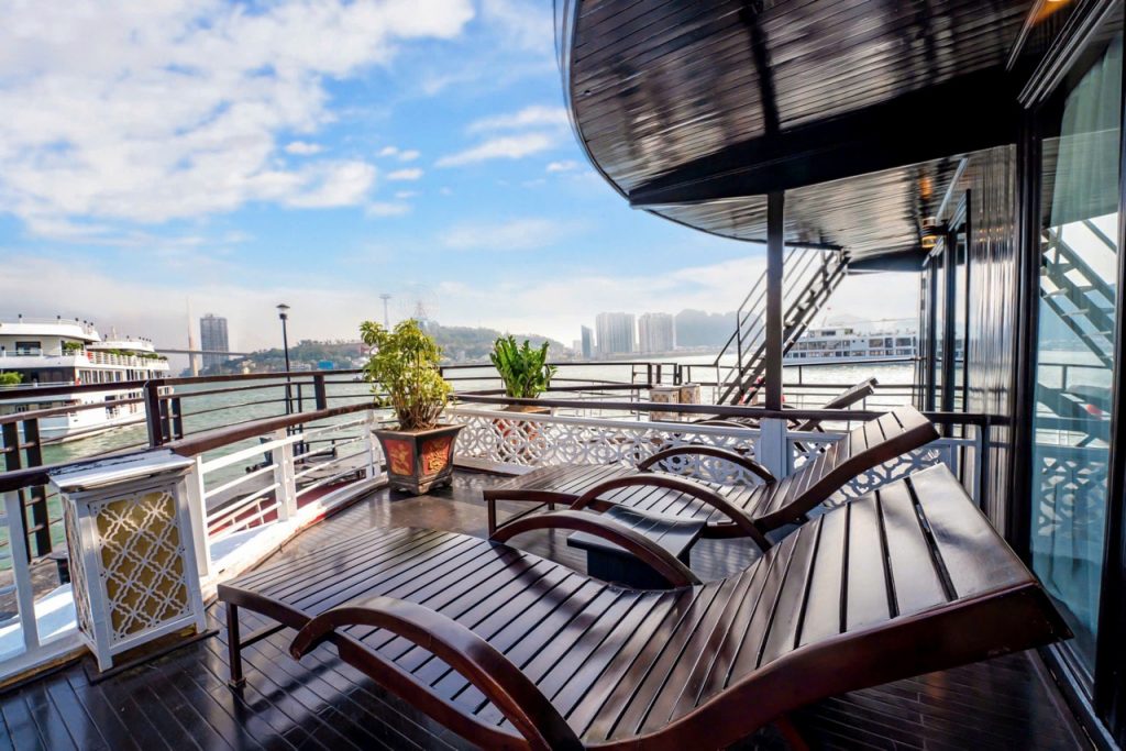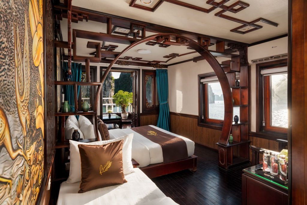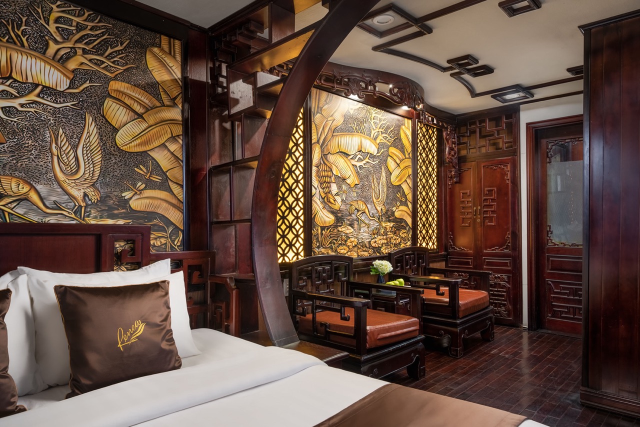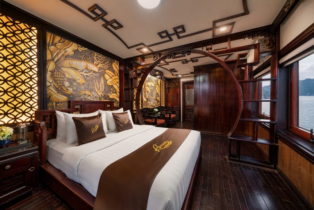 Classic wooden suite with a private balcony overlooking the quietest part of Bai Tu Long Bay.