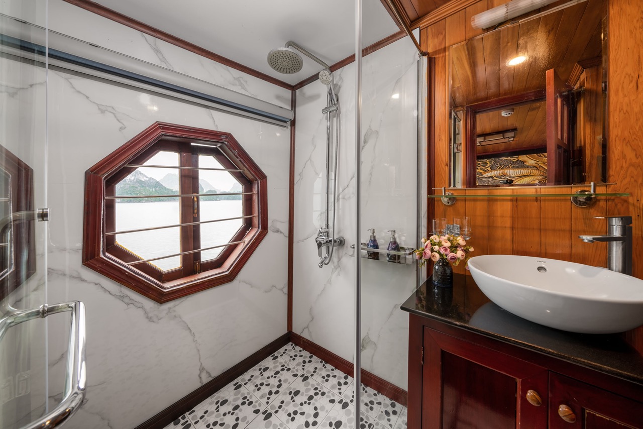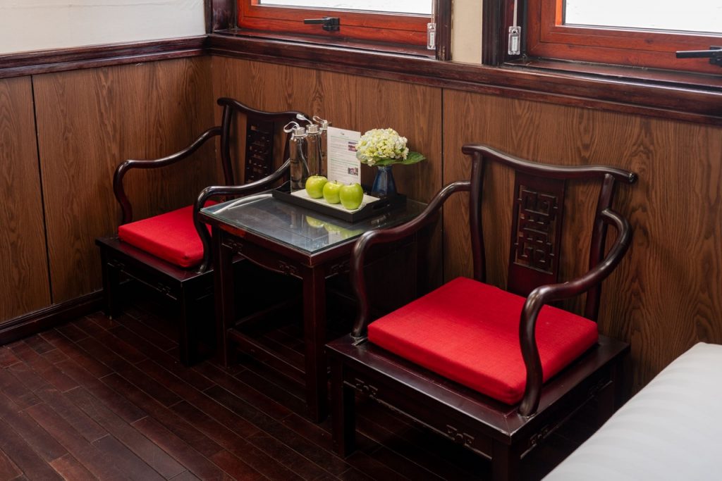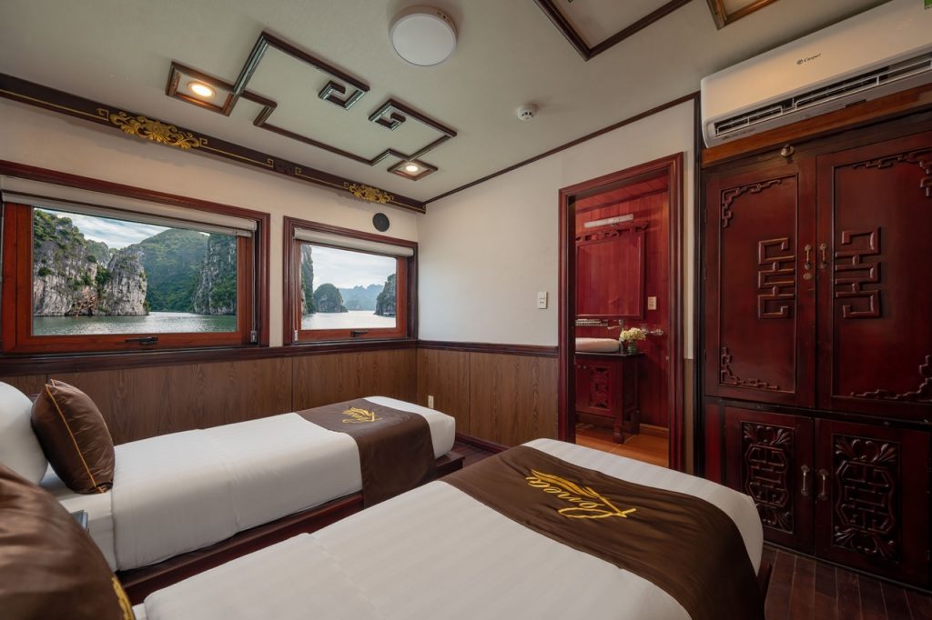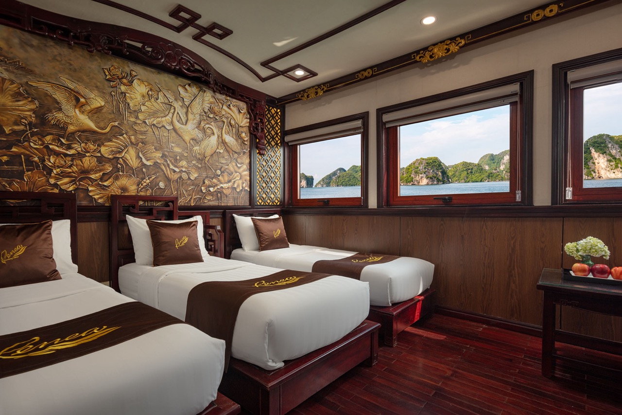 Renea Cruises operates traditional wooden junks with a mix of deluxe double, twin, triple and connecting cabins, plus a small number of simple suites, making it flexible for couples, groups of friends and families. All cabins feature private bathrooms, air-conditioning and windows looking out onto the bay, while triple and connecting options are especially convenient for families who want to keep everyone close in the same cosy wooden-junk atmosphere.
