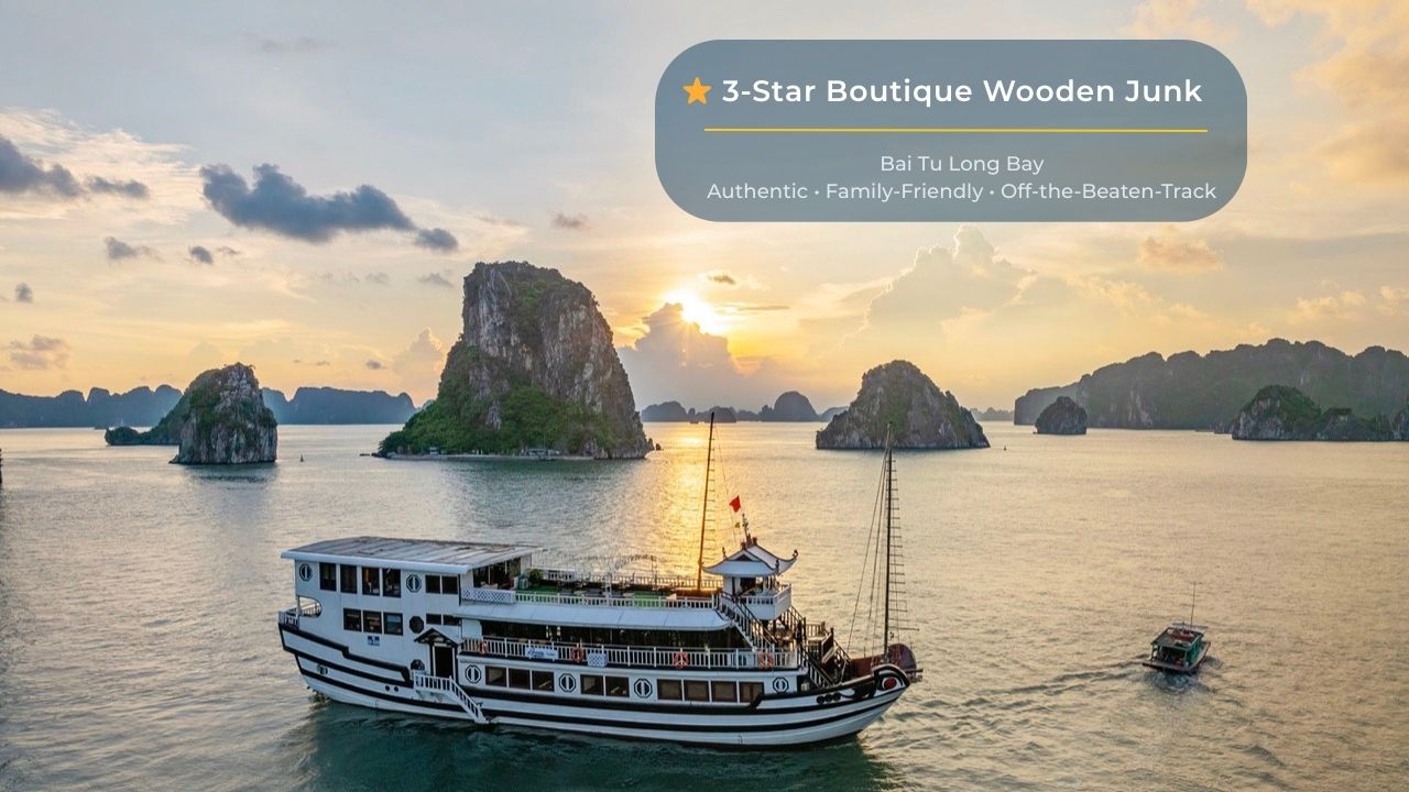 Renea Cruises operates a small fleet of traditional wooden boutique boats dedicated to the quieter corners of Bai Tu Long Bay, away from the more crowded routes. The focus is on authentic wooden-junk atmosphere, family-friendly cabins and active experiences like kayaking and top-deck BBQ dinners rather than sheer ship size.