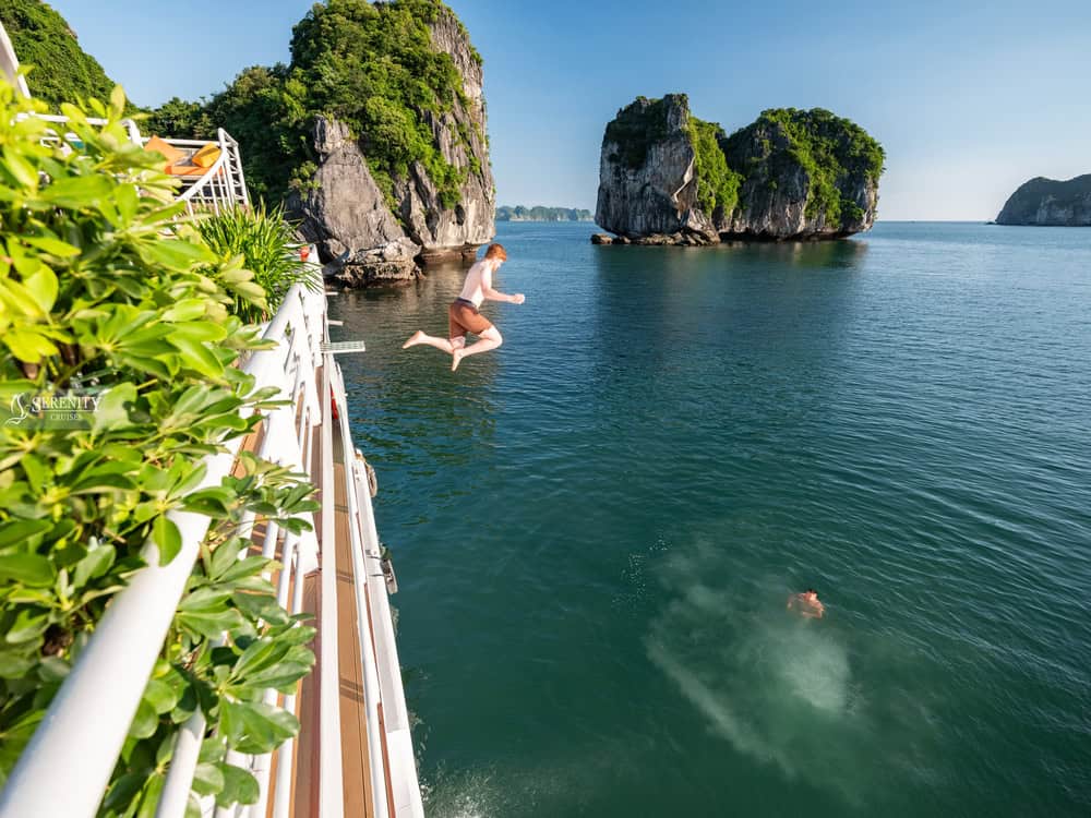 With Serenity Cruise, embark on an exclusive one-day journey where you’ll glide through emerald waters, explore traditional villages, kayak in secluded lagoons, and swim in the crystal-clear sea. Designed for travelers seeking adventure, cultural immersion, and relaxation, this luxury cruise promises a day of unforgettable moments in the heart of Lan Ha Bay.
