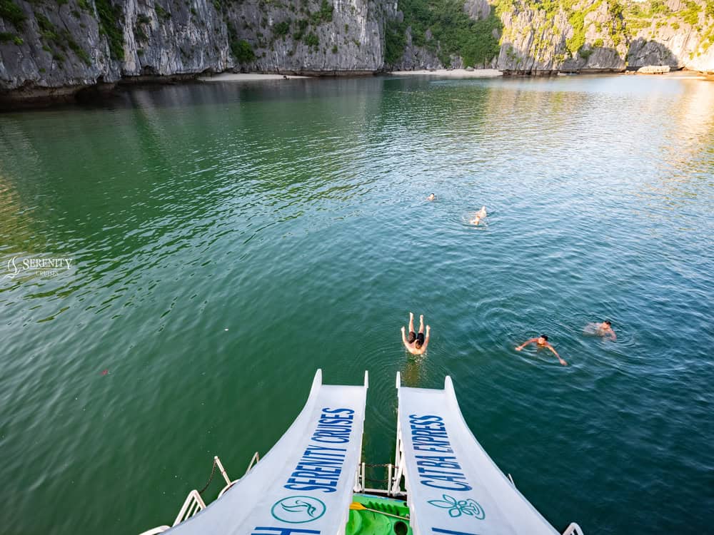 - 🚣 Kayaking & Swimming in Lan Ha Bay – Paddle through hidden lagoons, swim in crystal-clear waters, or try the exciting boat jump and water slide.