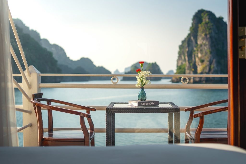- 🛥️ 12:00 – 12:15 – Board Swan Cruises by tender; enjoy a welcome drink and short safety briefing before being shown to your en-suite cabin with views over Bai Tu Long Bay.