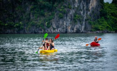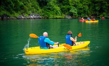 Most activities are gentle to moderate: short walks to Thien Canh Son Cave, kayaking in calm waters and optional swimming. Tai Chi is low-impact and suitable for most guests. If you prefer to stay on board, you can always remain on the boat while others kayak or explore caves. This makes the cruise suitable for couples, families and older travellers looking for soft adventure rather than intense trekking.