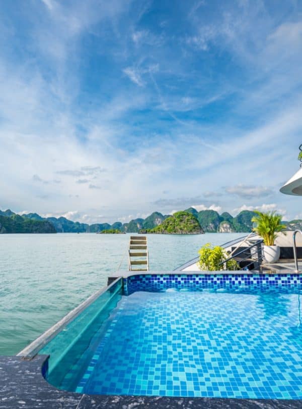 You board Velar of the Seas Cruise by tender and sail directly into the quieter waterways of Lan Ha Bay, where limestone cliffs feel closer and the sea lies smoother beneath the hull. Lunch is served as scenery unfolds, followed by a gentle cave exploration and time to swim in protected coves. As daylight softens, the ship becomes a floating retreatโwarm light, shared flavors, and an evening shaped entirely by your own rhythm.