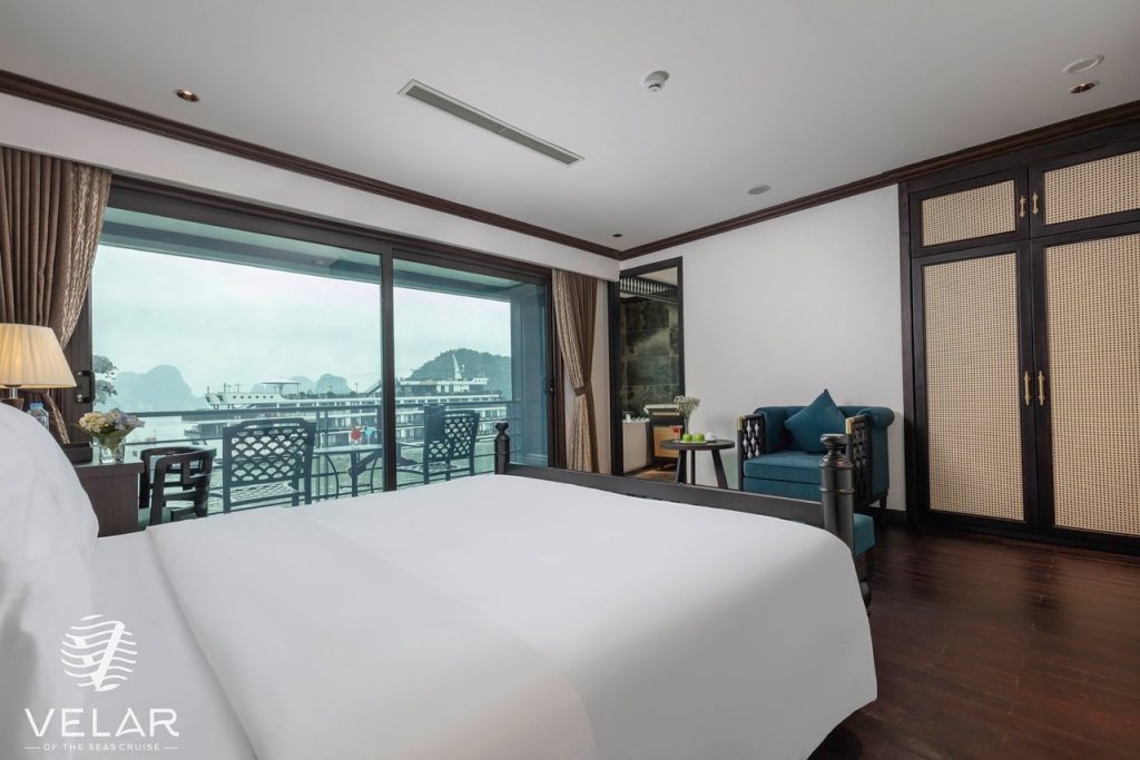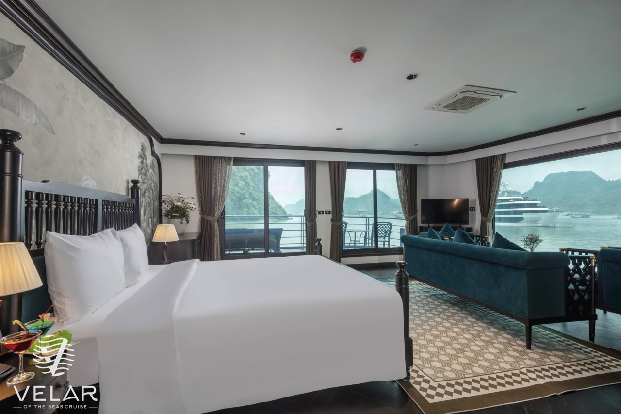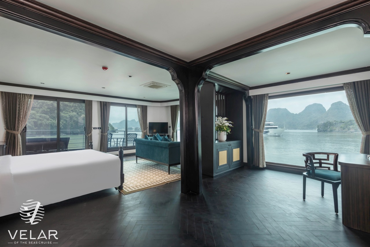 Velar of the Seas positions itself as a modern, neoclassical luxury cruise focusing on space, privacy, and a quieter Lan Ha Bay experience rather than crowded sightseeing loops.