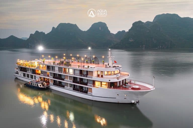On Day Two, fishermen wave from floating farms as a day-boat noses into quieter inlets; time slows to the rhythm of your paddle. If the tide allows, you beach at Ba Trai Dao for a salt-sweet swim and sunlit photos. Come evening, canapés meet golden water, dinner arrives under lantern glow, and the anchor light becomes a private constellation. The final morning opens with Tai Chi and tea steam in the cool air; brunch follows as cliffs glide past like a slow film. To shape the coastline further, pair with a Lan Ha Bay Day Cruise, compare with Lan Ha Bay 1-Night, or cross the bay to Ha Long Bay and serene Bai Tu Long Bay.