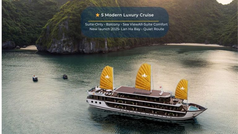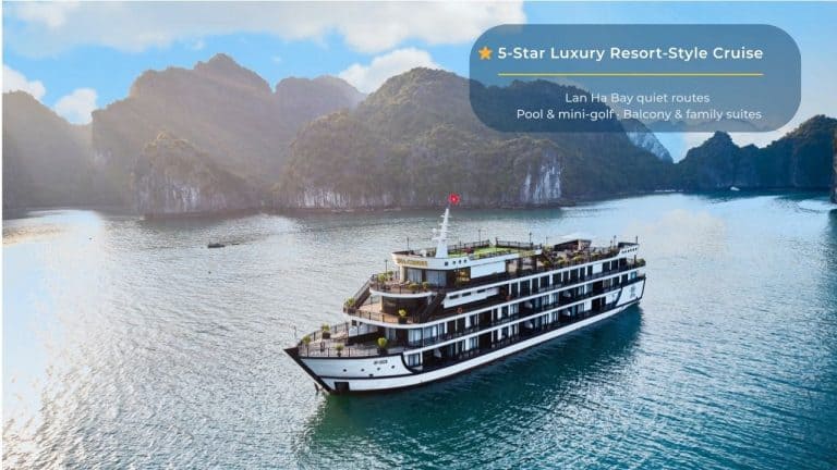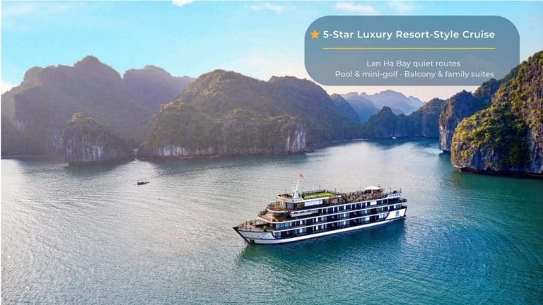 Leaving Hanoi, your journey to a Lan Ha Bay Cruise begins with roads lined by villages, rice fields, and glimpses of the Red River. By the time you step onto the pier and board your ship, the city has slipped away; ahead is a softer seascape of emerald channels and vertical cliffs. Here, the rhythm is unrushed: kayaks slide into hidden lagoons, bamboo boats glide into caves, and your only “schedule” is sunrise coffee, late-morning brunch, and a slow sunset on the sundeck.